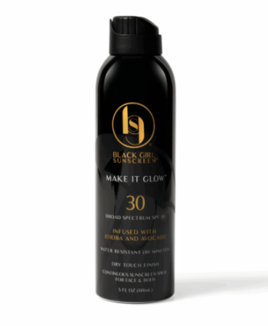 Despite contrary belief, you DO still need to use SPF even if the sun doesn’t seem to be physically out. Sun rays like UVA and UVB are still active even on cloudy days. This is what helps Black Girl Sunscreen’s Make it Glow spray come in handy. This fragrance-free continuous mist protects and moisturizes the skin while still providing a dry touch finish with no white cast that other sunscreens are infamous for. Available at Black Girl Sunscreen