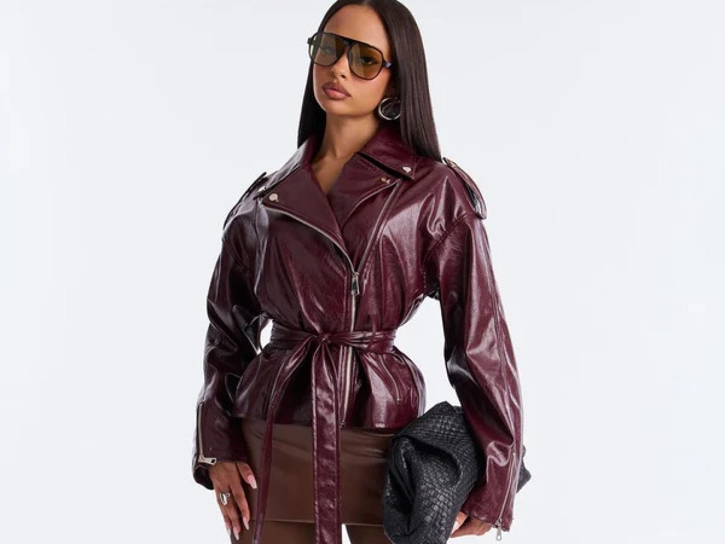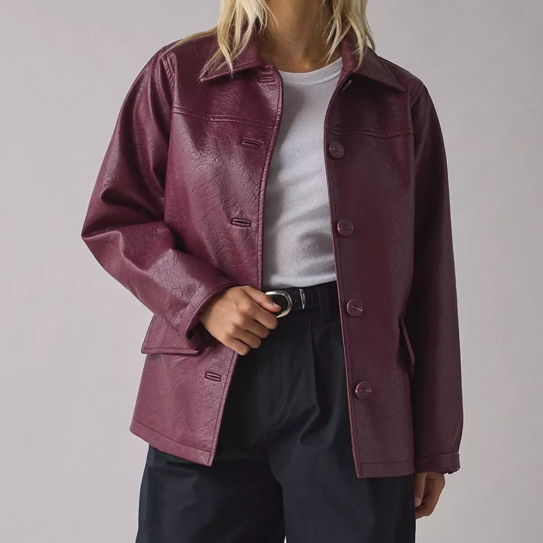 Big, bold, and unapologetically cherry. The oversized cut and rich faux leather turn casual looks into eye-catching moments.Available at Urban Outfitters